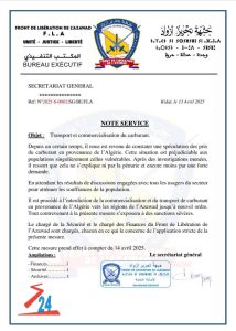 قررت الجبهة تعليق نقل الوقود من الجزائر إلى أزواد ابتداءً من 14 أبريل 2025، حتى انتهاء المناقشات مع الفاعلين في القطاع لإيجاد حلول عادلة. كما حذرت من أن أي تاجر يخالف القرار سيتعرض لعقوبات صارمة، وكلفت مسؤولي الأمن والمالية في الجبهة بضمان تنفيذ القرار.