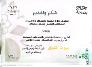 أعلنت وزارة الصحة في المملكة العربية السعودية عن تقديمها الشكر والتقدير للبعثة الطبية لشؤون حجاج الجمهورية الإسلامية الموريتانية، وذلك تقديرًا لمساهمته الفعّالة في دعم وتنسيق الخدمات الصحية المقدمة لحجاج بيت الله الحرام خلال موسم حج عام 1446هـ.