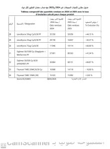كما تُبين المعطيات تحسن توفر عدة صيغ من Levothyrox، في حين أن التراجع المسجل في بعض الأصناف المحدودة يرتبط أساسا بتغير أنماط الوصفات الطبية، أو بالتحول نحو بدائل علاجية أحدث، ولا يعكس انقطاعا عاما أو هيكليا في تموين أدوية الأمراض المزمنة.