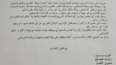 مستشفى النعمة يصدر أول تعميم إداري منذ وصول مديره الجديد