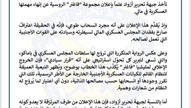 جبهة تحرير أزواد تصف إعلان فاغنر الانسحاب من مالي بالمسرحية الإعلامية