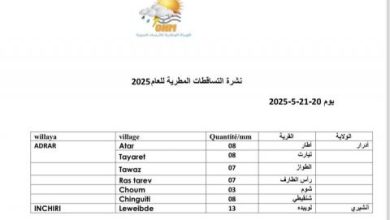 تساقطات مطرية على مناطق في ولايتي آدرار وانشيري (مقاييس)