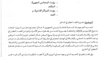 الداخلية تدعو الولاة للاستعداد لإنجاح فكرة قضاء العطل بالداخل