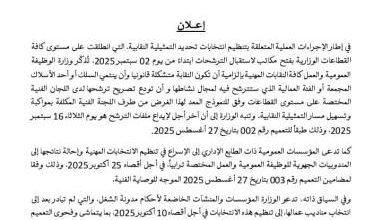 وزارة الوظيفة العمومية تعلن إجراءات تنظيم انتخابات تحديد الهيئات النقابية