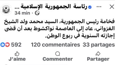 الرئيس غزواني يعود إلى العاصمة نواكشوط بعد قضاء عطلته