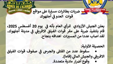 حركة تحرير أزواد تعلن استهداف مقر للفيلق الإفريقي في أجلهوك
