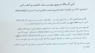 وزارة التربية تلزم المدارس الخاصة باحترام موعد افتتاح السنة الدراسية